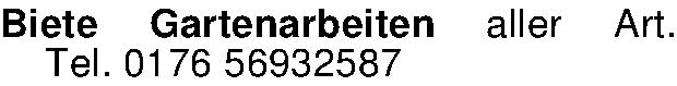 Anzeigentitel: Biete Gartenarbeiten aller Art. Tel. 0176 56932587