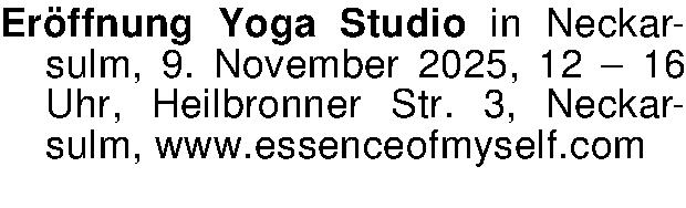Anzeigentitel: Eröffnung Yoga Studio in Neckarsulm, 9. November 2025, 12 - 16 U