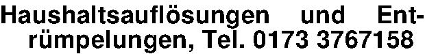 Haushaltsauflösungen und Entrümpelungen, Tel. 0173 3767158