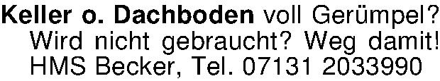 Keller o. Dachboden voll Gerümpel? Wird nicht gebraucht? Weg damit! HMS Becker, Tel. 07131 2033990