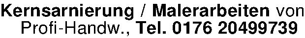Anzeigentitel: Kernsarnierung / Malerarbeiten von Profi-Handw., Tel. 0176 20499