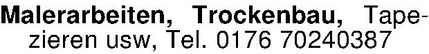 Anzeigentitel: Malerarbeiten, Trockenbau, Tapezieren usw, Tel. 0176 70240387
