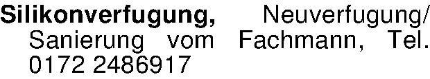 Anzeigentitel: Silikonverfugung, Neuverfugung/Sanierung vom Fachmann, Tel. 0172