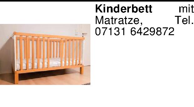 Kinderbett mit Matratze, Tel. 07131 6429872