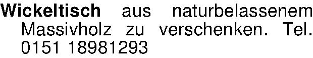 Anzeigentitel: Wickeltisch aus naturbelassenem Massivholz zu verschenken. Tel.