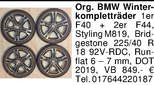 Anzeigentitel: Org. BMW Winterkompletträder 1er F40 + 2er F44, Styling M819, Br