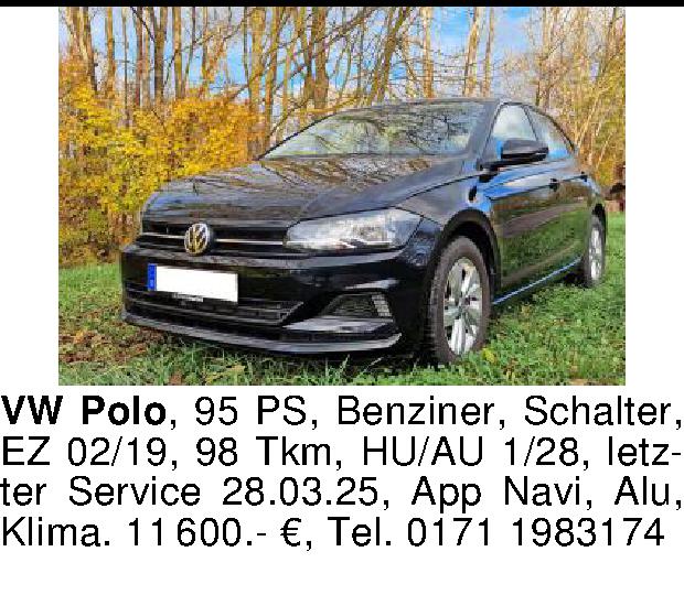 Anzeigentitel: VW Polo, 95 PS, Benziner, Schalter, EZ 02/19, 98 Tkm, HU/AU 1/28