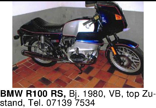 Anzeigentitel: BMW R100 RS, Bj. 1980, VB, top Zustand, Tel. 07139 7534