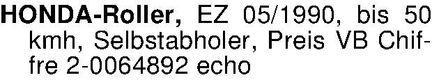 HONDA-Roller, EZ 05/1990, bis 50 kmh, Selbstabholer, Preis VB Chiffre 2-0064892 echo