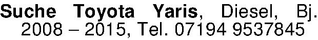 Anzeigentitel: Suche Toyota Yaris, Diesel, Bj. 2008 - 2015, Tel. 07194 9537845