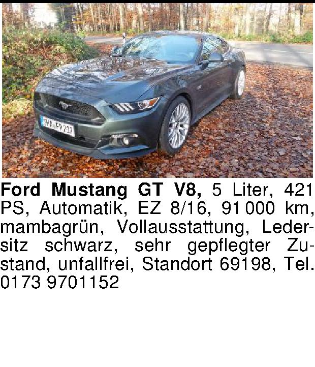 Anzeigentitel: Ford Mustang GT V8, 5 Liter, 421 PS, Automatik, EZ 8/16, 91 000