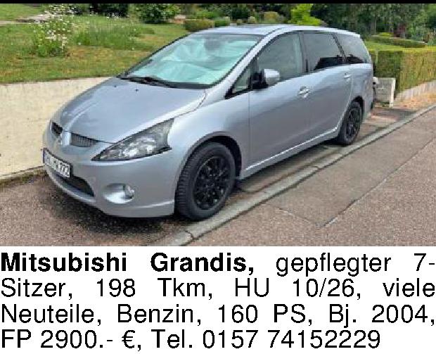 Mitsubishi Grandis, gepflegter 7-­Sitzer, 198 Tkm, HU 10/26, viele Neuteile, Benzin, 160 PS, Bj. 2004, FP 2900.- €, Tel. 0157 74152229