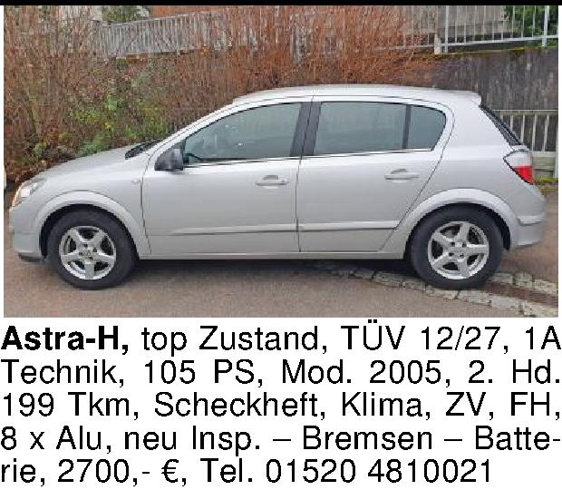 Anzeigentitel: Astra-H, top Zustand, TÜV 12/27, 1A Technik, 105 PS, Mod. 2005,