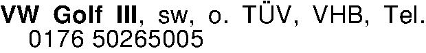 Anzeigentitel: VW Golf III, sw, o. TÜV, VHB, Tel. 0176 50265005