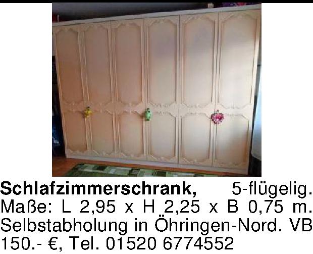 Anzeigentitel: Schlafzimmerschrank, 5-flügelig. Maße: L 2,95 x H 2,25 x B 0,75