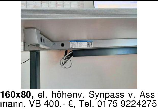 Anzeigentitel: 160x80, el. höhenv. Synpass v. Assmann, VB 400.- €, Tel. 0175 92