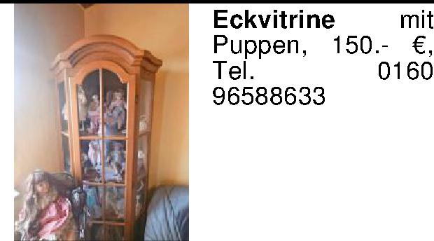 Anzeigentitel: Eckvitrine mit Puppen, 150.- €, Tel. 0160 96588633