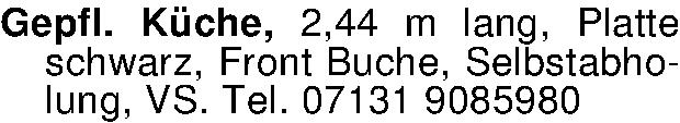 Gepfl. Küche, 2,44 m lang, Platte schwarz, Front Buche, Selbstabholung, VS. Tel. 07131 9085980