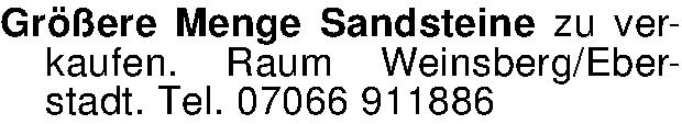 Größere Menge Sandsteine zu verkaufen. Raum Weinsberg/Eberstadt. Tel. 07066 911886
