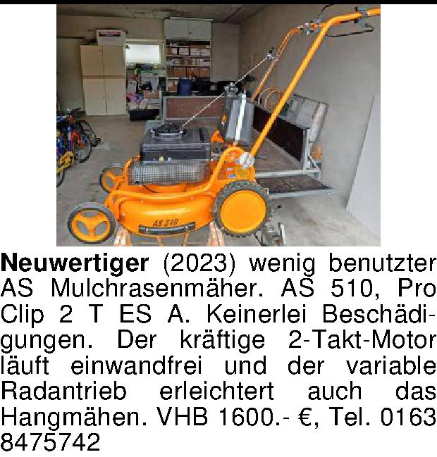 Anzeigentitel: Neuwertiger (2023) wenig benutzter AS Mulchrasenmäher. AS 510, P