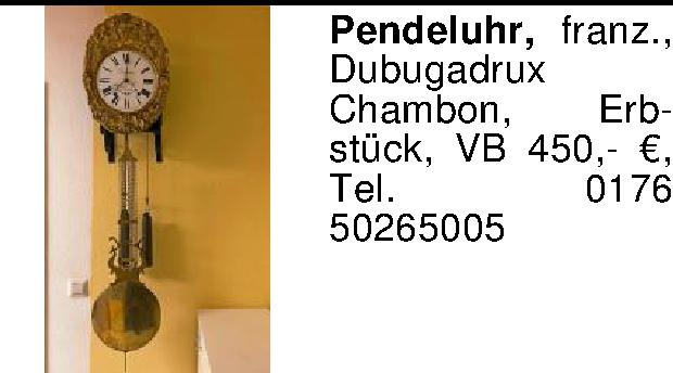 Anzeigentitel: Pendeluhr, franz., Dubugadrux Chambon, Erbstück, VB 450,- €, Tel