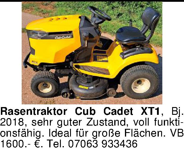 Rasentraktor Cub Cadet XT1, Bj. 2018, sehr guter Zustand, voll funktionsfähig. Ideal für große Flächen. VB 1600.- €. Tel. 07063 933436