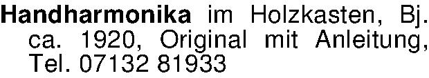 Handharmonika im Holzkasten, Bj. ca. 1920, Original mit Anleitung, Tel. 07132 81933