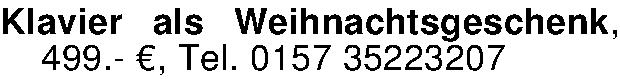 Anzeigentitel: Klavier als Weihnachtsgeschenk, 499.- €, Tel. 0157 35223207
