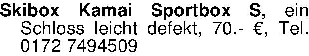 Anzeigentitel: Skibox Kamai Sportbox S, ein Schloss leicht defekt, 70.- €, Tel.