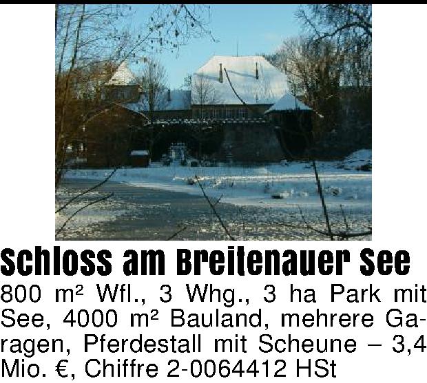 Anzeigentitel: Schloss am Breitenauer See 800 m² Wfl., 3 Whg., 3 ha Park mit Se