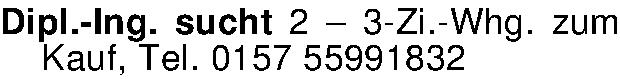 Anzeigentitel: Dipl.-Ing. sucht 2 - 3-Zi.-Whg. zum Kauf, Tel. 0157 55991832
