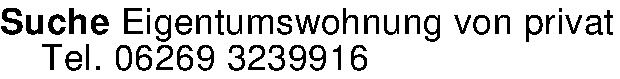 Suche Eigentumswohnung von privatTel. 06269 3239916