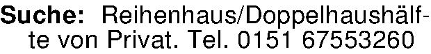 Anzeigentitel: Suche: Reihenhaus/Doppelhaushälfte von Privat. Tel. 0151 6755326