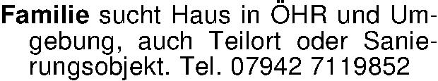 Anzeigentitel: Familie sucht Haus in ÖHR und Umgebung, auch Teilort oder Sanier
