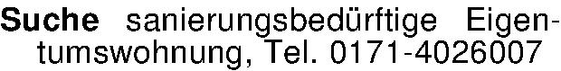Suche sanierungsbedürftige Eigentumswohnung, Tel. 0171-4026007
