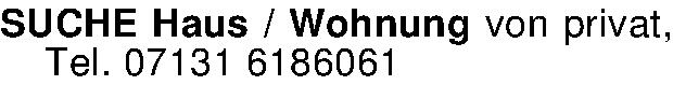 Anzeigentitel: SUCHE Haus / Wohnung von privat, Tel. 07131 6186061