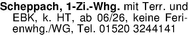 Anzeigentitel: Scheppach, 1-Zi.-Whg. mit Terr. und EBK, k. HT, ab 06/26, keine
