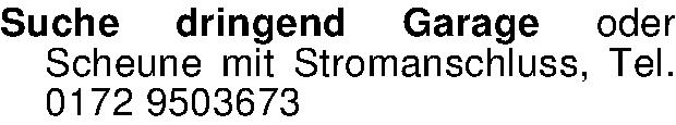 Suche dringend Garage oder Scheune mit Stromanschluss, Tel. 0172 9503673
