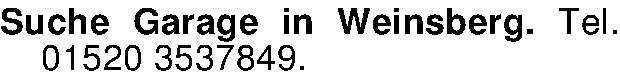 Suche Garage in Weinsberg. Tel. 01520 3537849.
