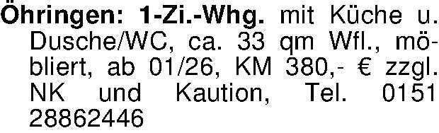 Anzeigentitel: Öhringen: 1-Zi.-Whg. mit Küche u. Dusche/WC, ca. 33 qm Wfl., möb
