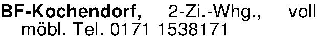 Anzeigentitel: BF-Kochendorf, 2-Zi.-Whg., voll möbl. Tel. 0171 1538171