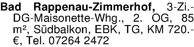 Anzeigentitel: Bad Rappenau-Zimmerhof, 3-Zi.-DG-Maisonette-Whg., 2. OG, 85 m²,