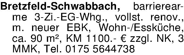 Anzeigentitel: Bretzfeld-Schwabbach, barrierearme 3-Zi.-EG-Whg., vollst. renov.