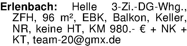 Anzeigentitel: Erlenbach: Helle 3-Zi.-DG-Whg., ZFH, 96 m², EBK, Balkon, Keller,