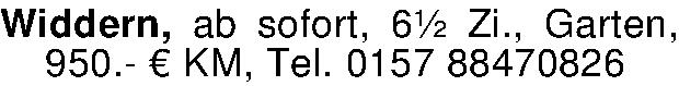 Anzeigentitel: Widdern, ab sofort, 6 1/2 Zi., Garten, 950.- € KM, Tel. 0157 884