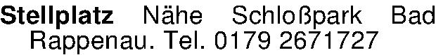 Anzeigentitel: Stellplatz Nähe Schloßpark Bad Rappenau. Tel. 0179 2671727