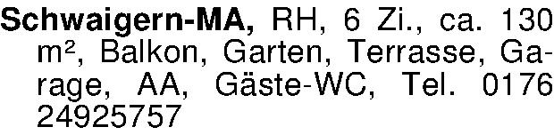 Anzeigentitel: Schwaigern-MA, RH, 6 Zi., ca. 130 m², Balkon, Garten, Terrasse,