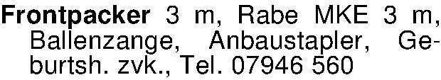 Frontpacker 3 m, Rabe MKE 3 m, Ballenzange, Anbaustapler, Geburtsh. zvk., Tel. 07946 560