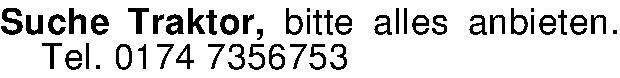 Anzeigentitel: Suche Traktor, bitte alles anbieten. Tel. 0174 7356753