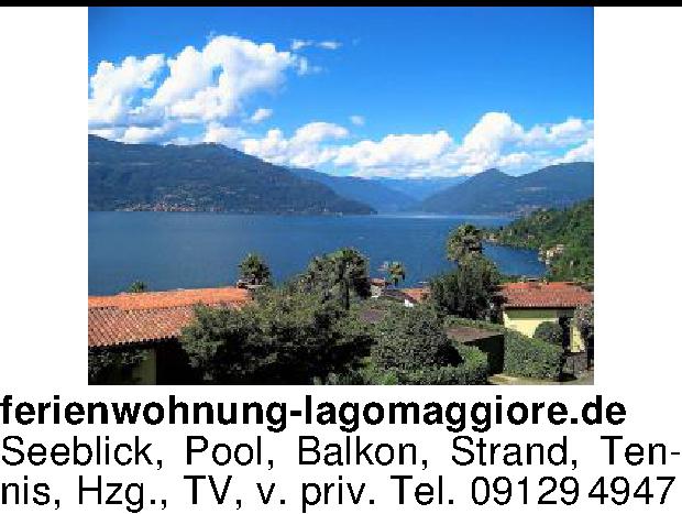 ferienwohnung-lagomaggiore.de Seeblick, Pool, Balkon, Strand, Tennis, Hzg., TV, v. priv. Tel. 09129 4947